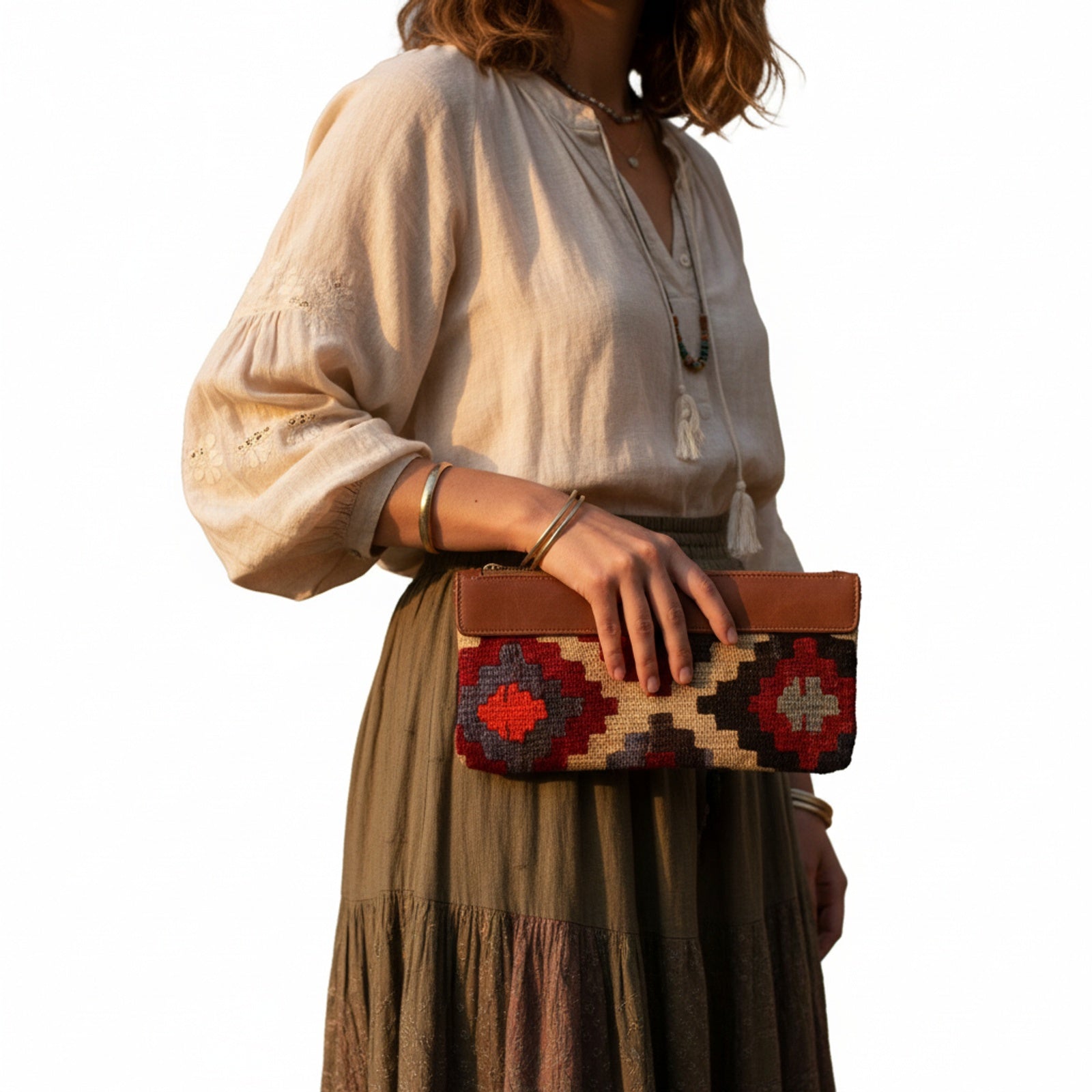 At Loom & Hide, we give these heirloom textiles a second life and purpose. Each vintage kilim is restored with care, paired with full-grain leather, and transformed into a timeless, one-of-one piece — made to be carried forward for generations.