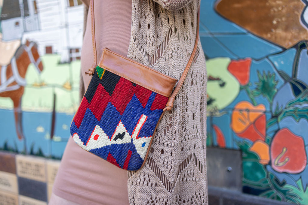 Even though they look substantial, our kilim and leather bags are lighter than most all-leather designs. The woven textile reduces weight while still offering incredible strength.