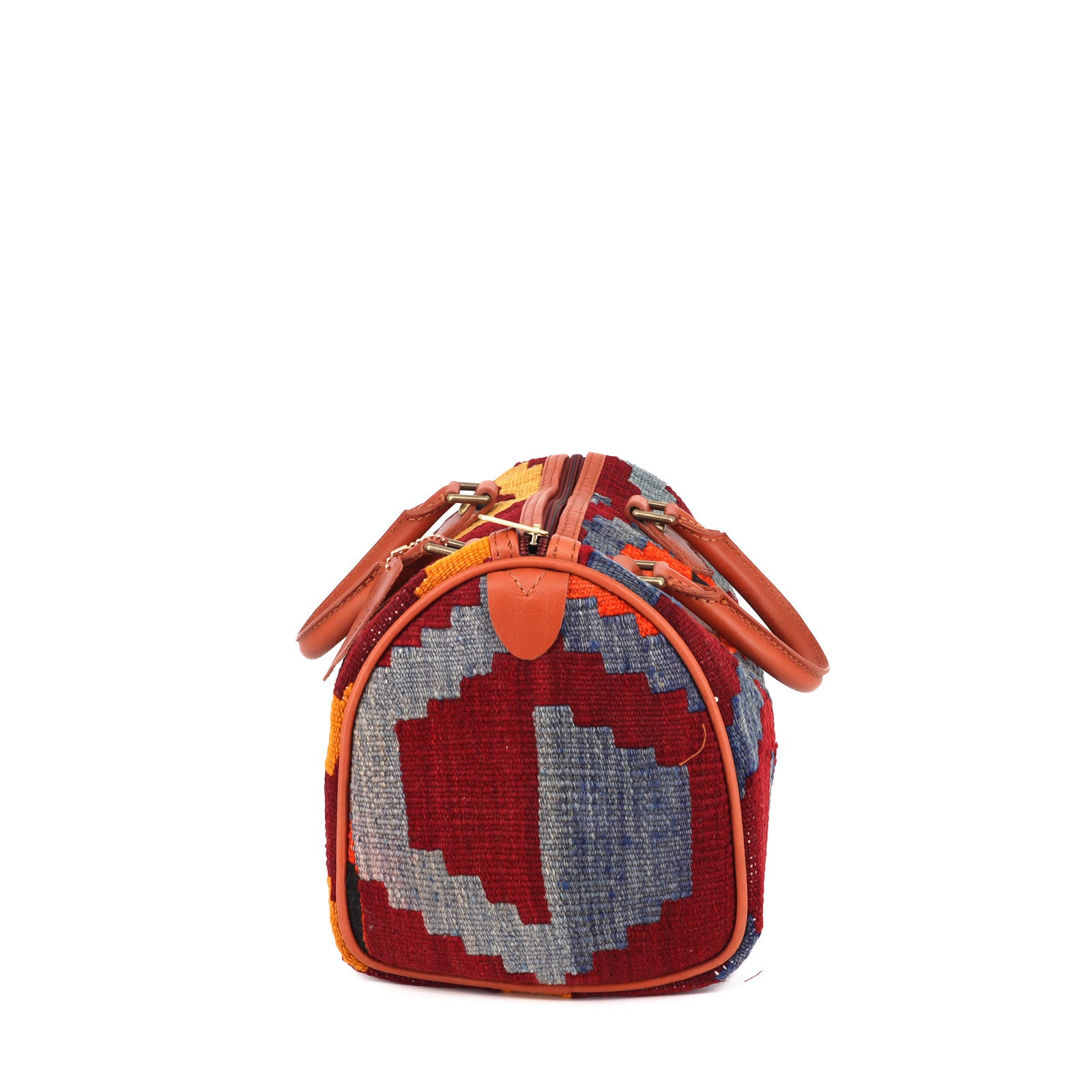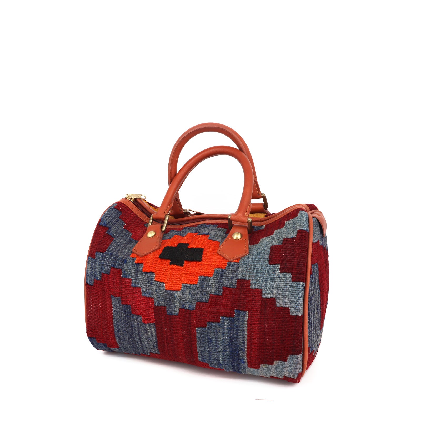 The leather reinforces high-contact areas like straps, corners, and bases, while the woven kilim remains lightweight and flexible. The result is a bag that feels soft but sturdy, able to handle daily use for years — even decades — without losing its shape or charm.