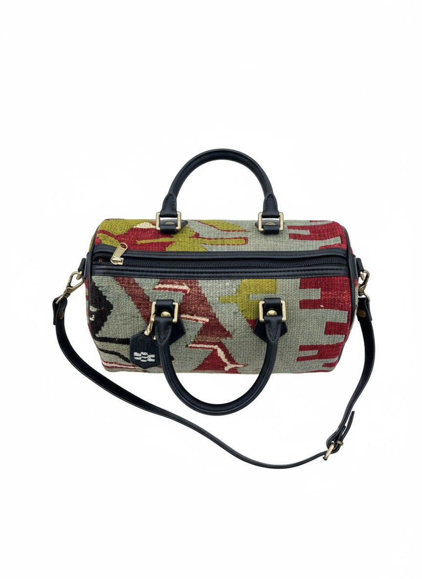 Our artisans study each pattern before cutting, ensuring that no two bags share the same layout or colors. The kilim is then combined with full-grain, vegetable-tanned leather — the most durable and natural form of leather — and finished entirely by hand.