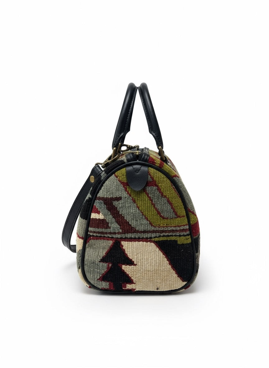 The leather reinforces high-contact areas like straps, corners, and bases, while the woven kilim remains lightweight and flexible. The result is a bag that feels soft but sturdy, able to handle daily use for years — even decades — without losing its shape or charm.
