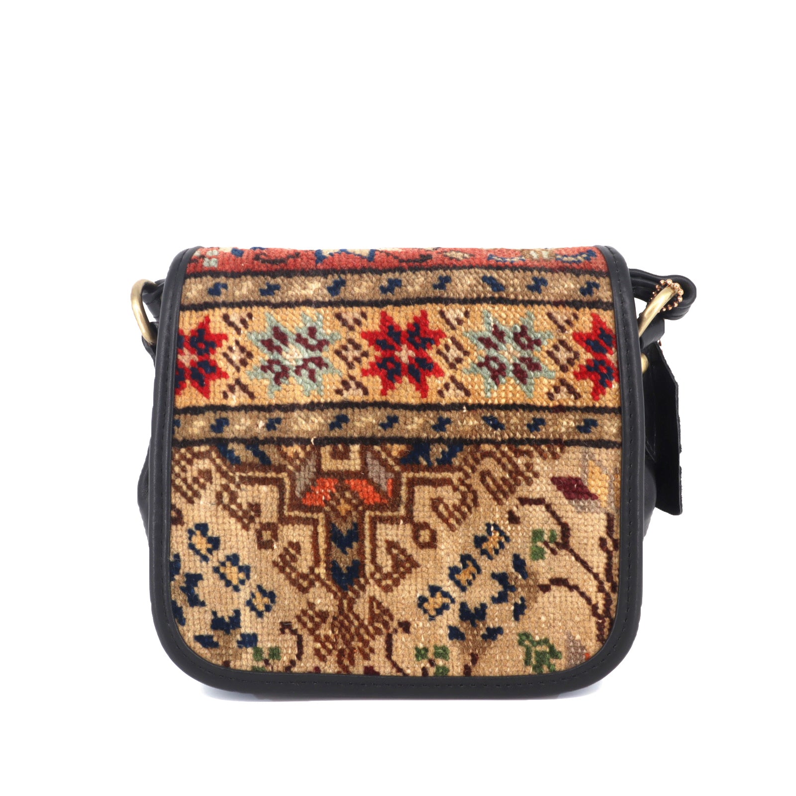 Our artisans study each pattern before cutting, ensuring that no two bags share the same layout or colors. The kilim is then combined with full-grain, vegetable-tanned leather — the most durable and natural form of leather — and finished entirely by hand.