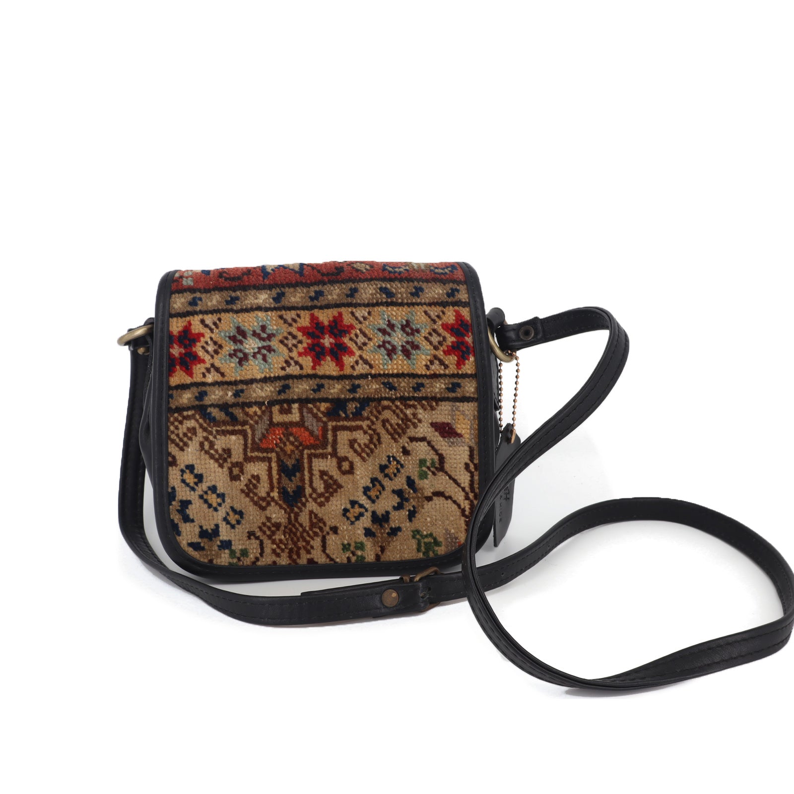 Each piece is made from a unique, hand-woven rug, so no one else will ever own the same bag.