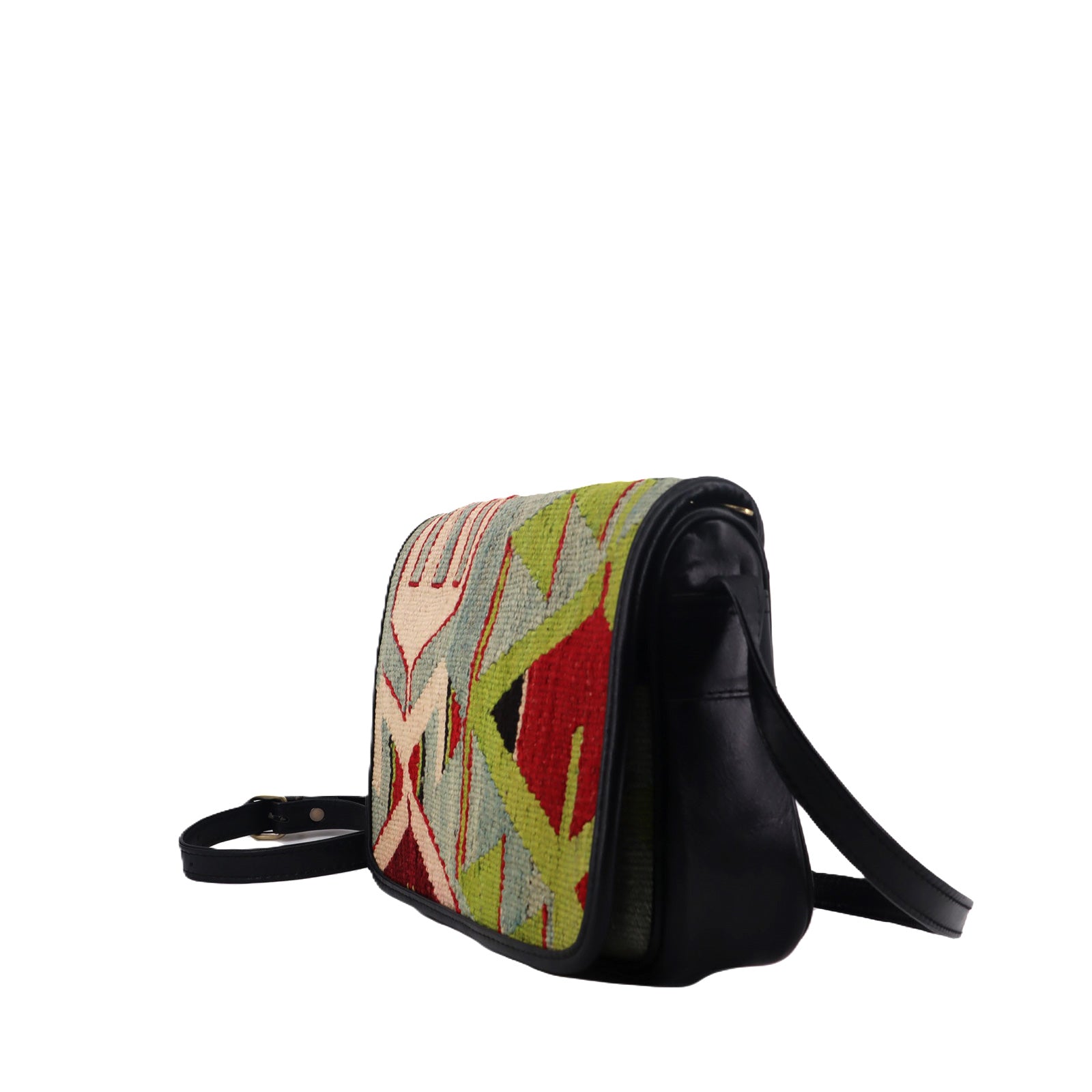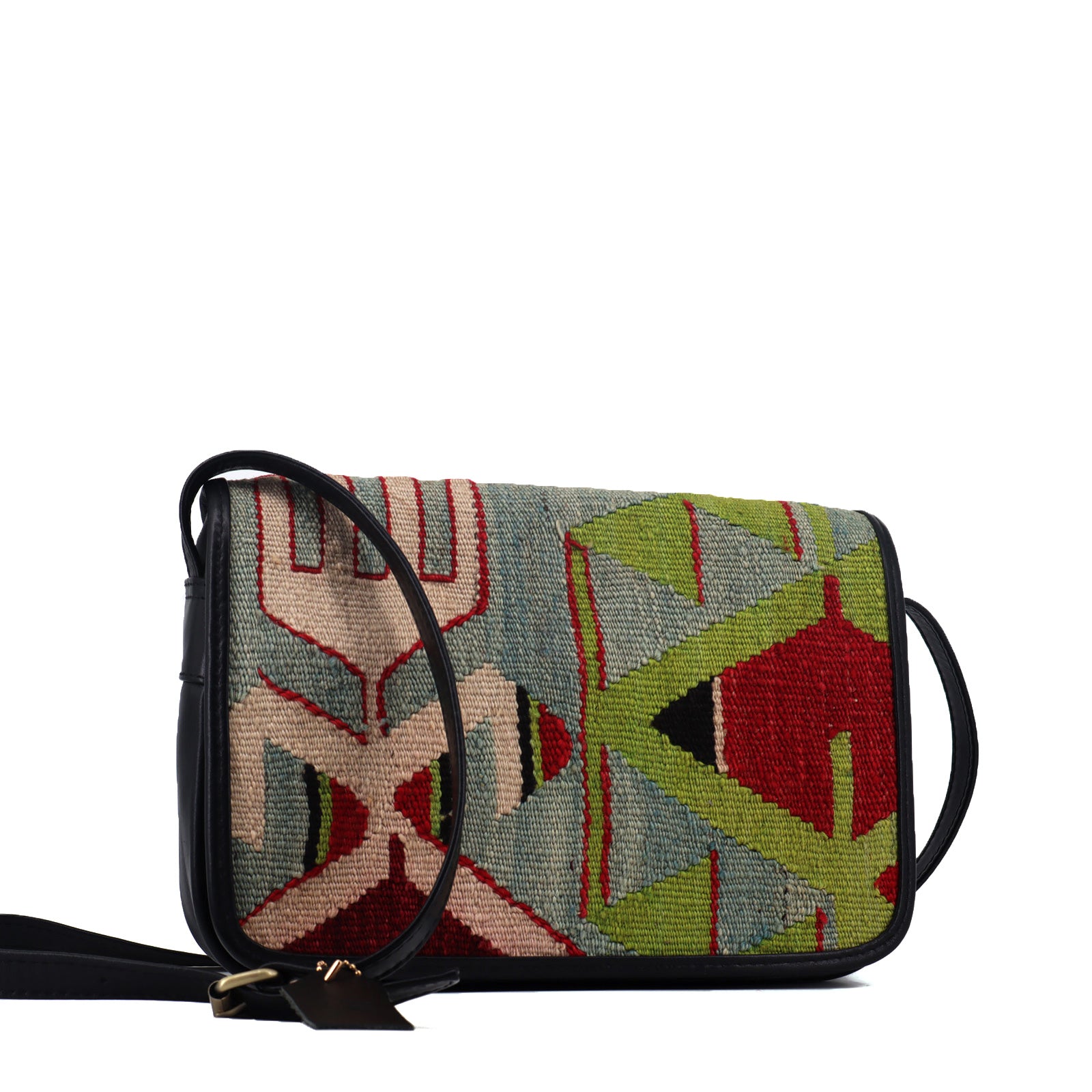 Our artisans study each pattern before cutting, ensuring that no two bags share the same layout or colors. The kilim is then combined with full-grain, vegetable-tanned leather — the most durable and natural form of leather — and finished entirely by hand.