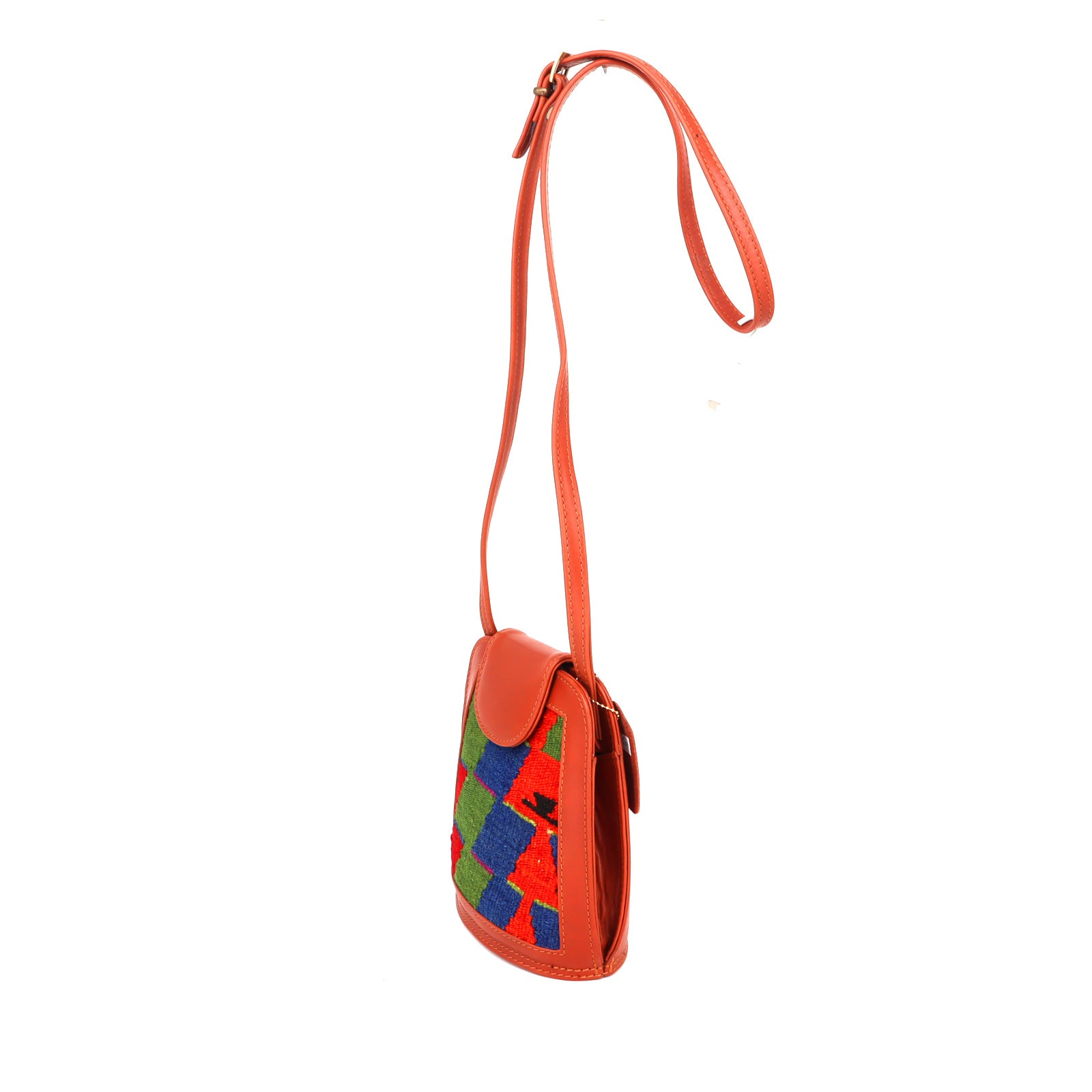 Handcrafted from a vintage kilim rug and finished with vegetable-tanned full-grain leather, this Crossbody Bag is a unique blend of vintage charm and modern style. The bag features a durable shoulder strap and a secure magnetic opening to keep your belongings safe.