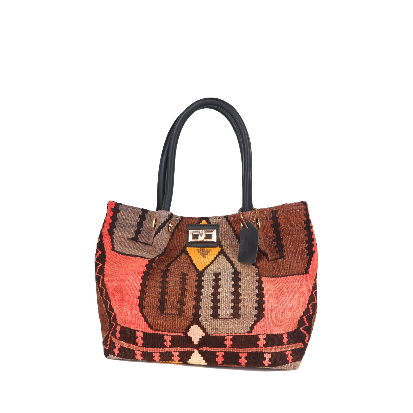 Each piece is made from a unique, hand-woven rug, so no one else will ever own the same bag.