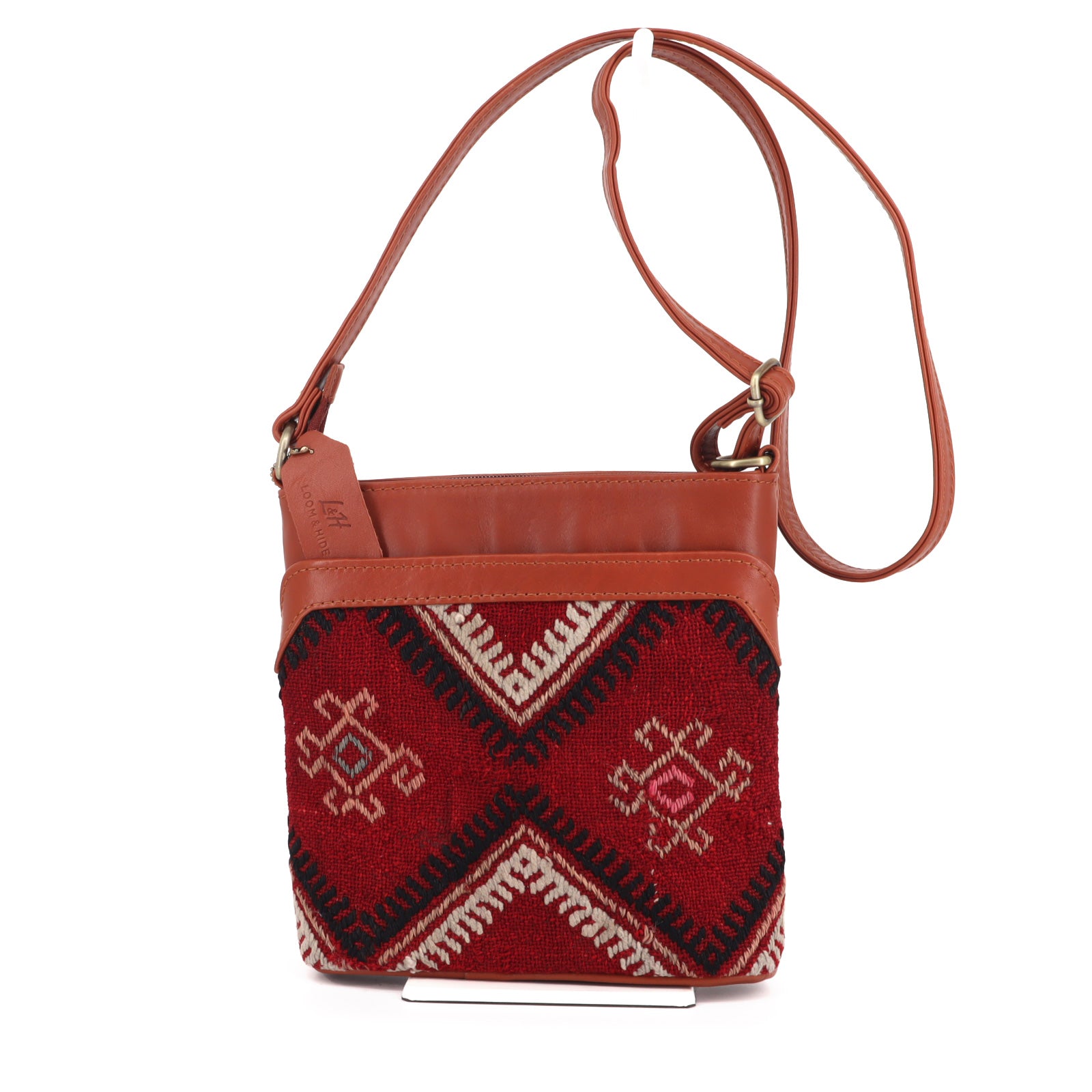 Each piece is one-of-a-kind, showcasing unique rug patterns and colors, making the Jamil Kilim Crossbody Leather Bag a truly unique addition to any wardrobe.