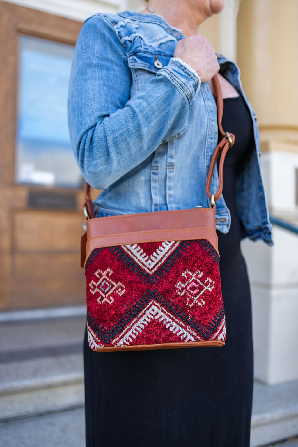 Kashgar Kilim Crossbody Leather Bag: Named after the vibrant city of Kashgar on the Silk Road, this bag represents the journey and evolution of kilim crafts carried across continents.