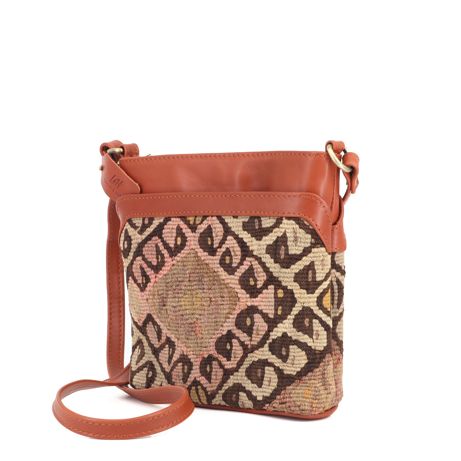 Each piece is one-of-a-kind, showcasing unique rug patterns and colors. Experience the combination of heritage and craftsmanship with the Lisboa Kilim Crossbody Leather Bag.