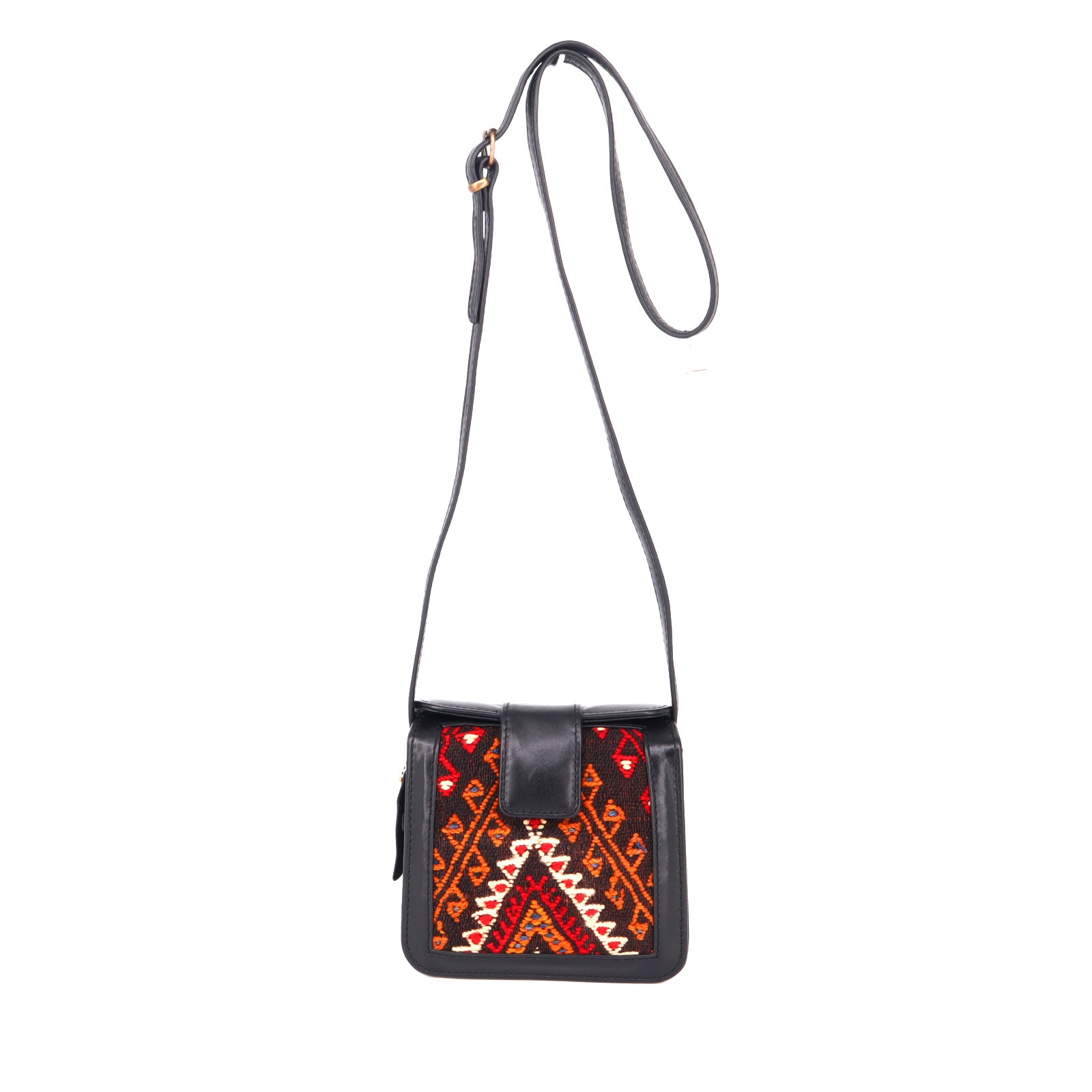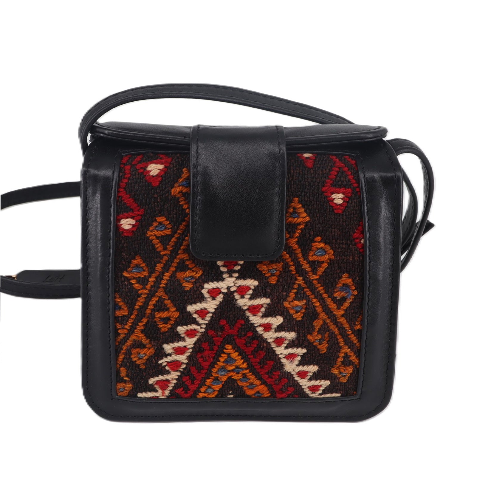 Handcrafted from a vintage kilim rug and finished with vegetable-tanned full-grain leather. This crossbody bag features a shoulder strap, YKK zipper for secure closure, and brass hardware for a classic touch. The interior is lined with cotton canvas and includes a leather trimmed zip pocket and an additional zip interior pocket for safekeeping your essentials.