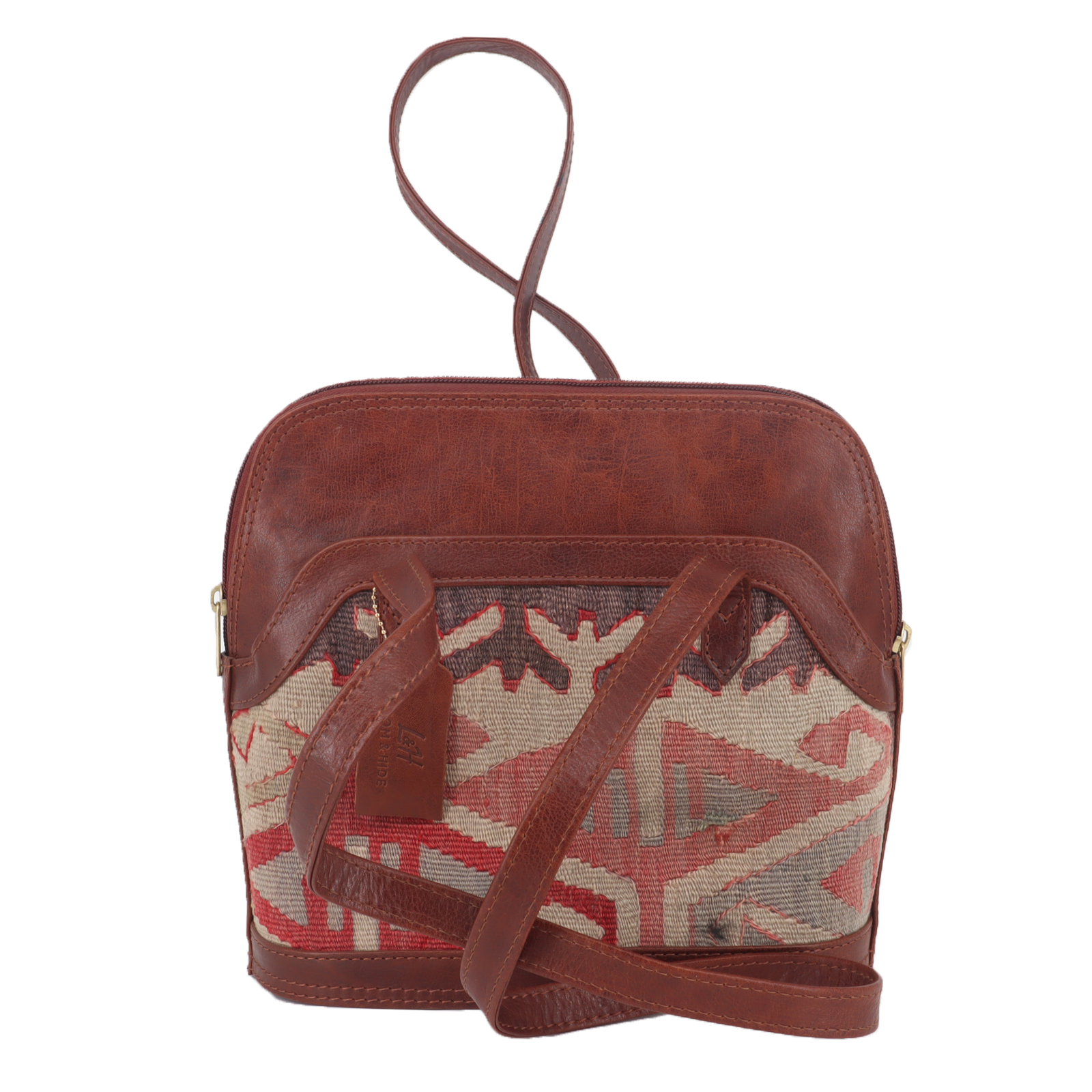 Our artisans study each pattern before cutting, ensuring that no two bags share the same layout or colors. The kilim is then combined with full-grain, vegetable-tanned leather — the most durable and natural form of leather — and finished entirely by hand.