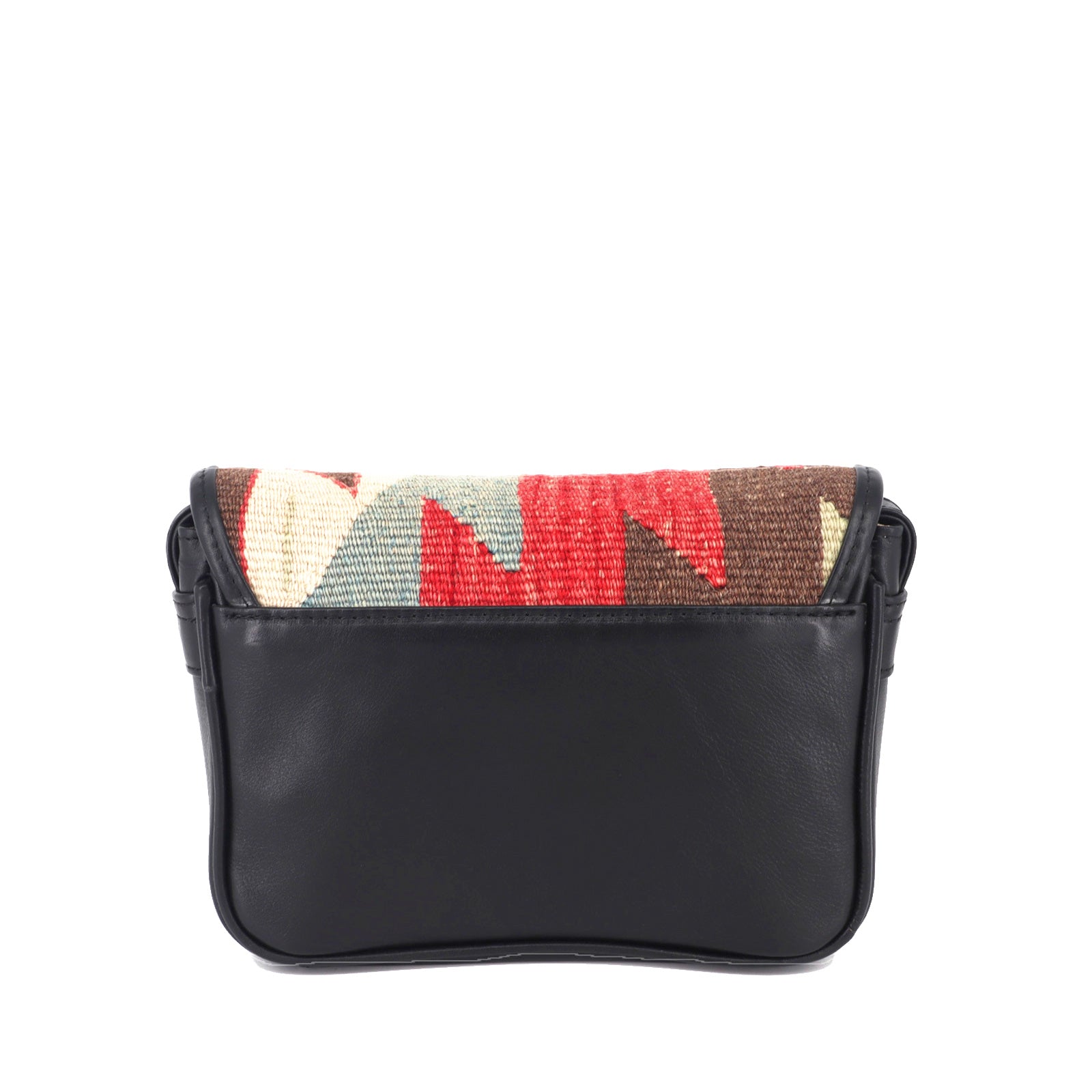 Handcrafted from a vintage kilim rug and finished with vegetable-tanned full-grain leather. This stunning crossbody bag features a comfortable shoulder strap and a robust magnetic opening reveals a cotton canvas interior with a zip pocket, all trimmed in fine leather.