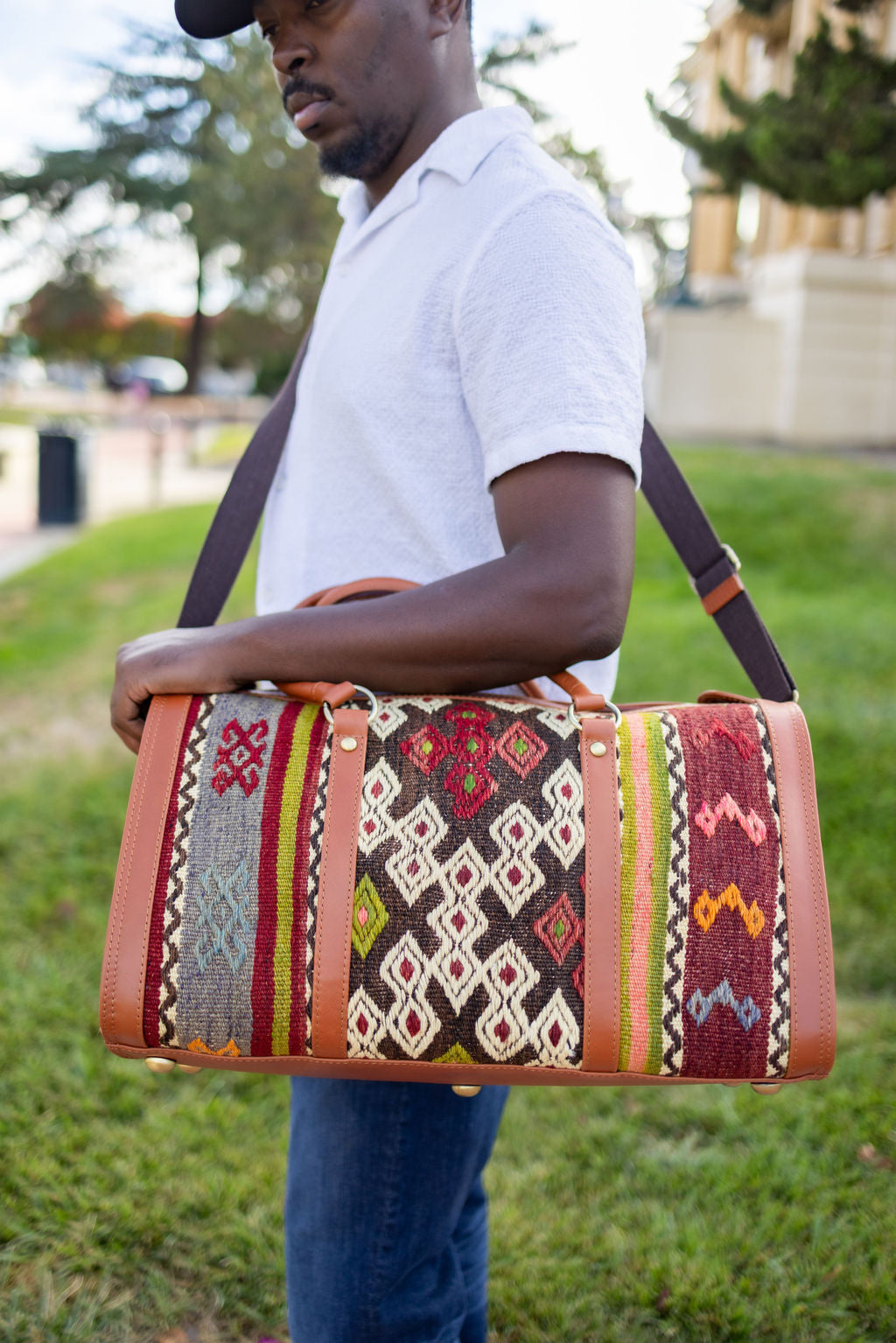 Mwezi Kilim Weekender Leather Bag