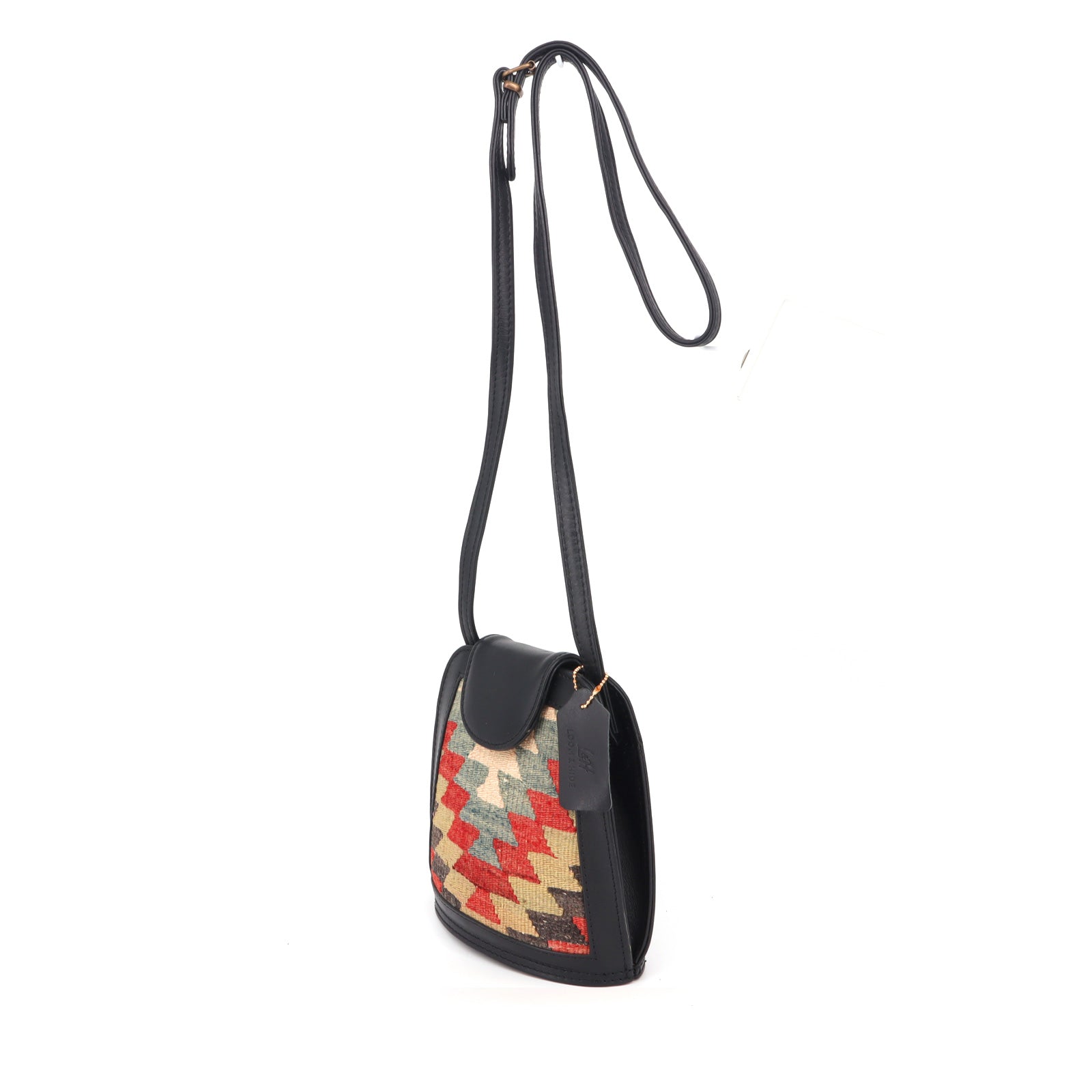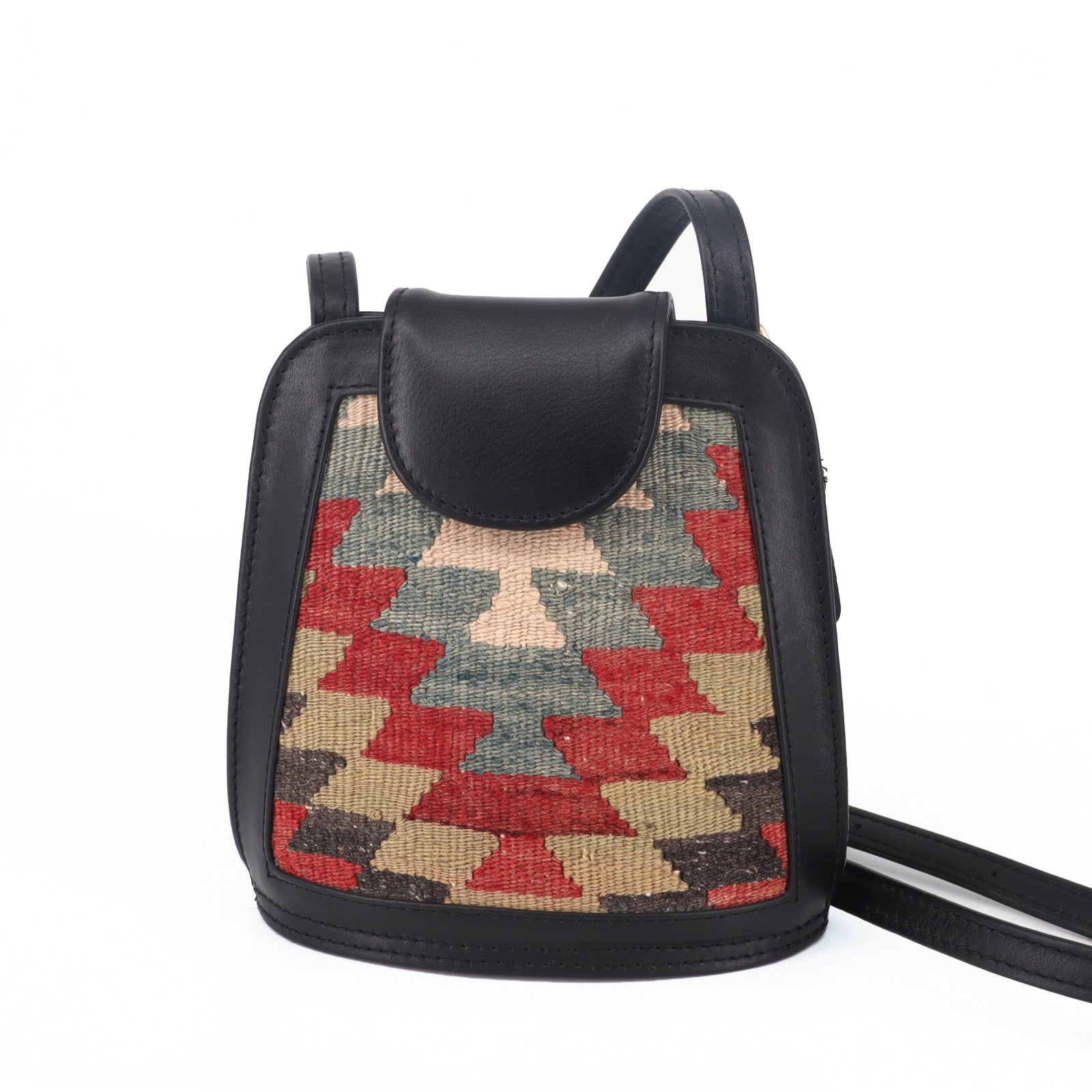Our artisans study each pattern before cutting, ensuring that no two bags share the same layout or colors. The kilim is then combined with full-grain, vegetable-tanned leather — the most durable and natural form of leather — and finished entirely by hand.