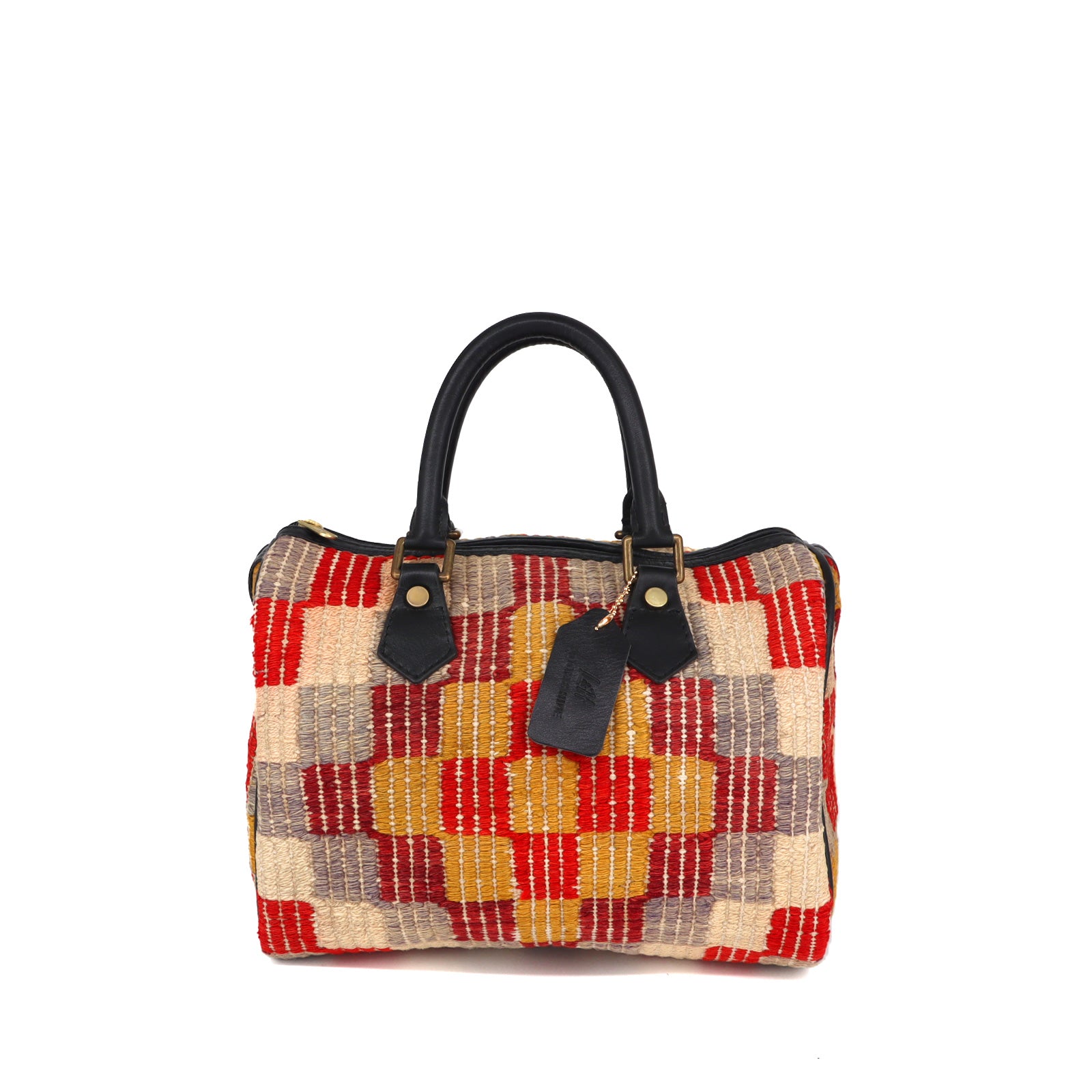 Each piece is made from a unique, hand-woven rug, so no one else will ever own the same bag.