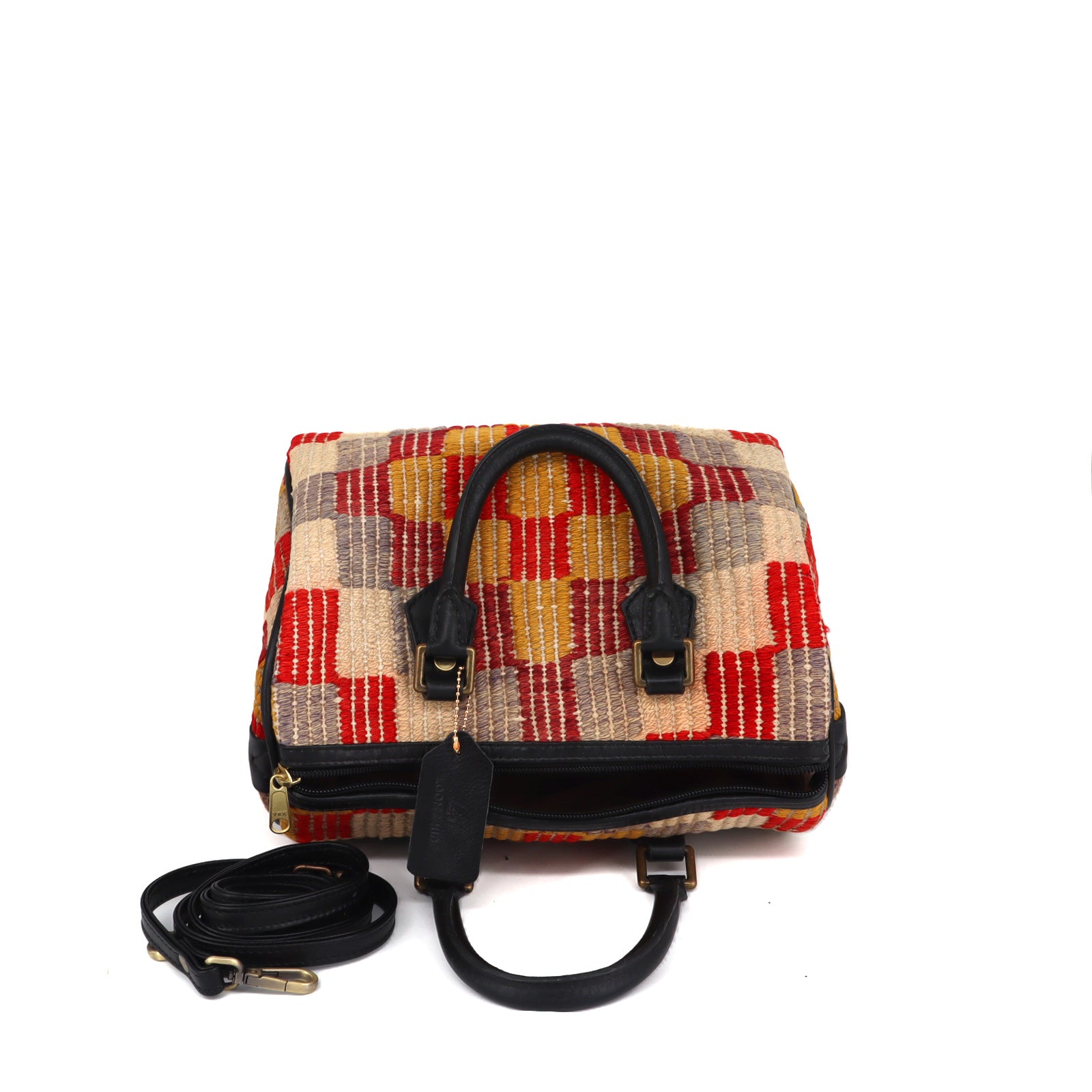Our artisans study each pattern before cutting, ensuring that no two bags share the same layout or colors. The kilim is then combined with full-grain, vegetable-tanned leather — the most durable and natural form of leather — and finished entirely by hand.