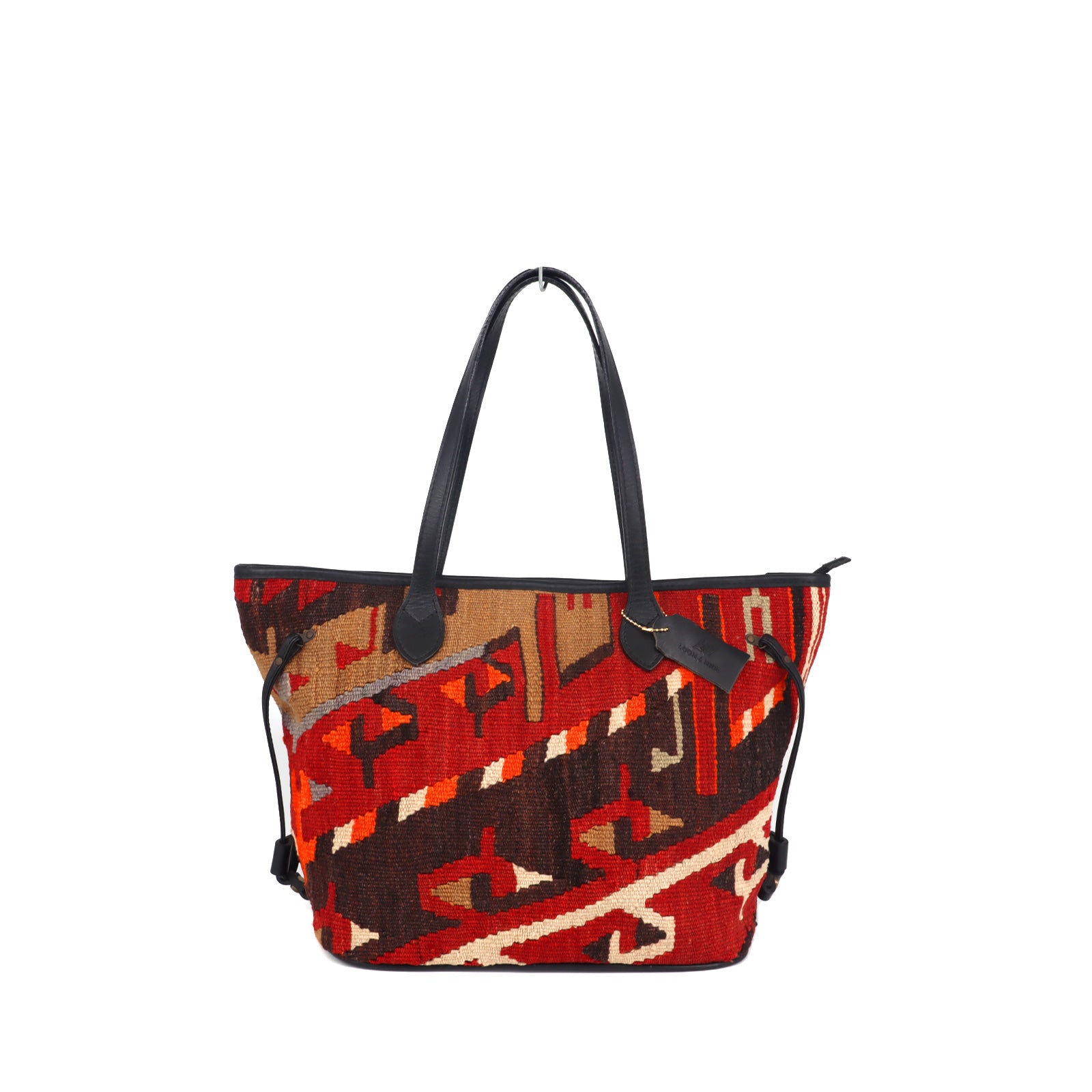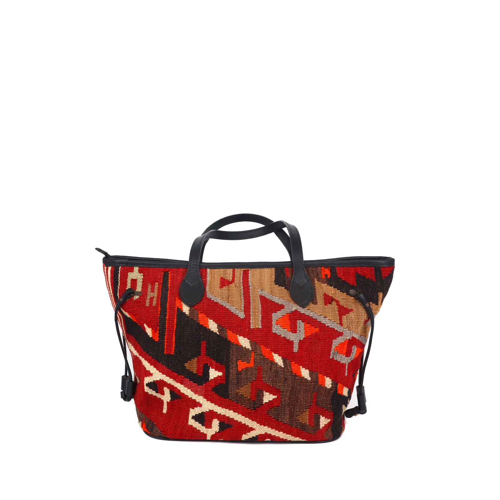 Each piece is made from a unique, hand-woven rug, so no one else will ever own the same bag.