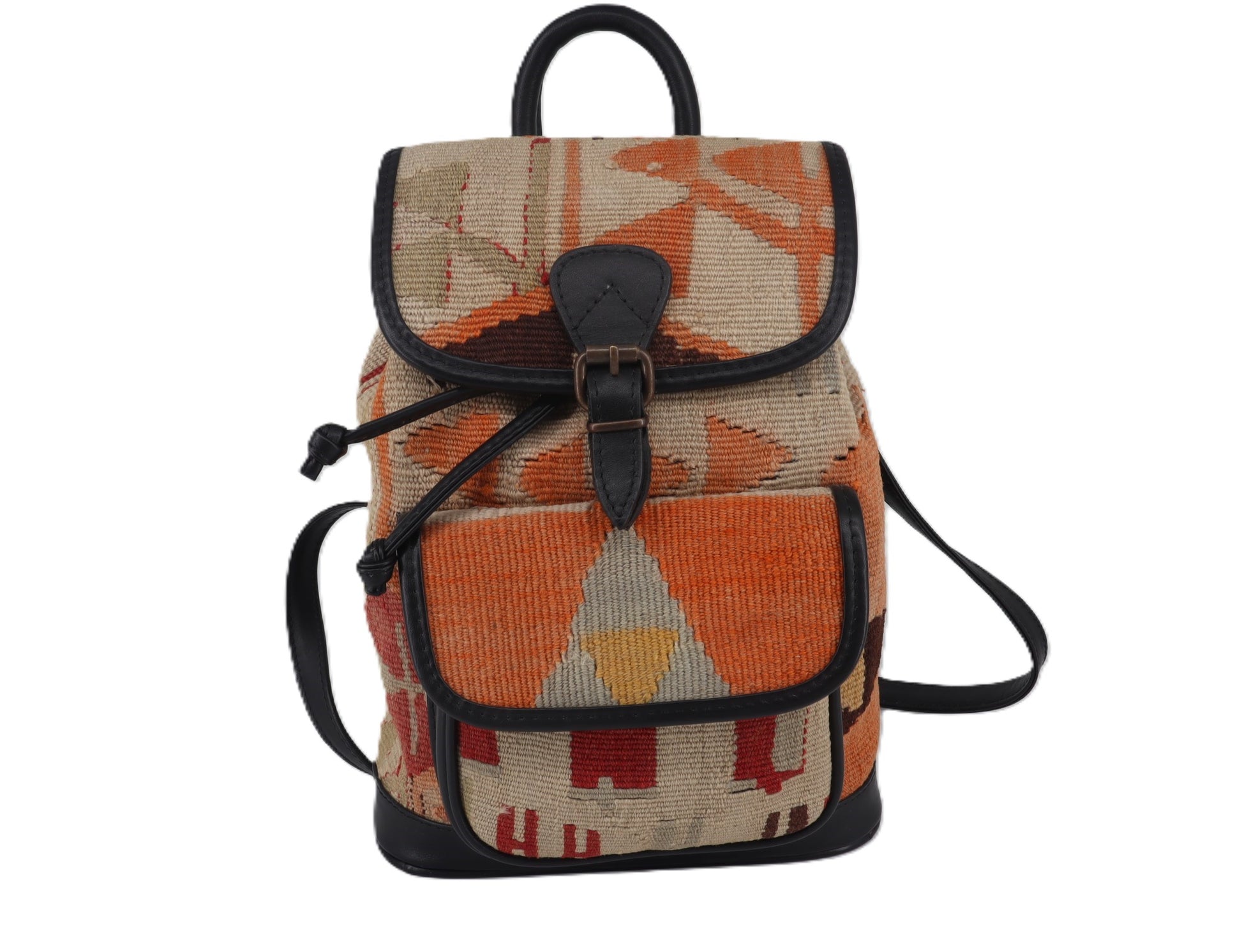The leather reinforces high-contact areas like straps, corners, and bases, while the woven kilim remains lightweight and flexible. The result is a bag that feels soft but sturdy, able to handle daily use for years — even decades — without losing its shape or charm.