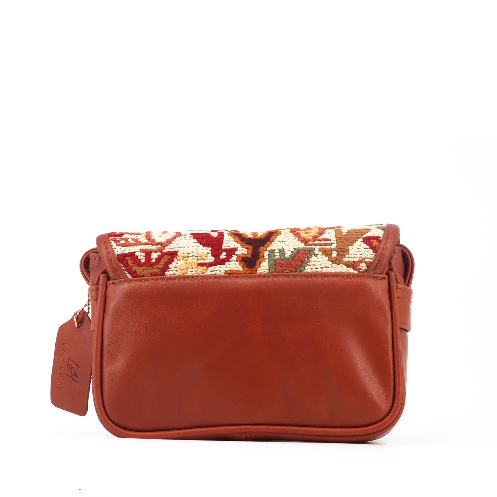 Our artisans study each pattern before cutting, ensuring that no two bags share the same layout or colors. The kilim is then combined with full-grain, vegetable-tanned leather — the most durable and natural form of leather — and finished entirely by hand.