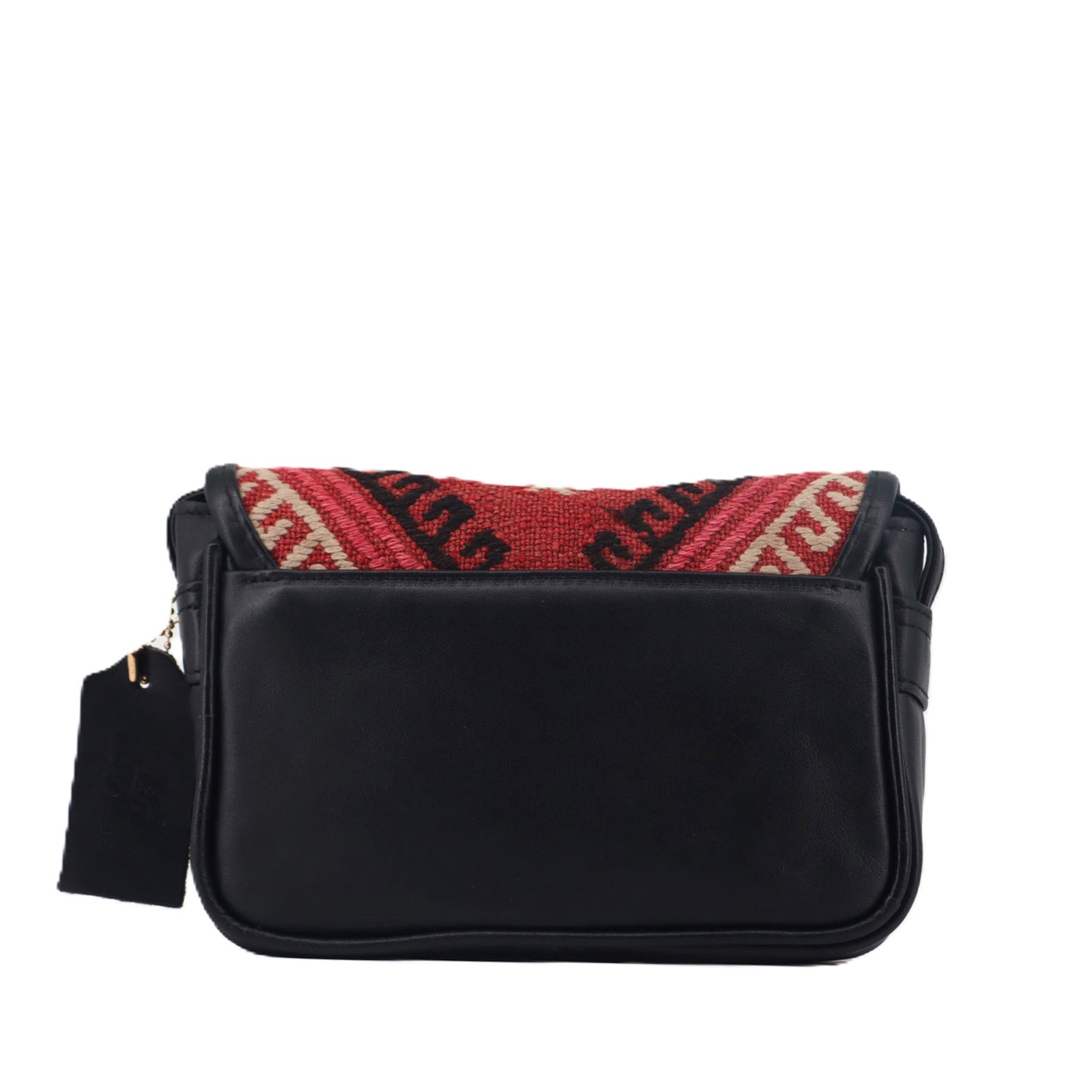 Our artisans study each pattern before cutting, ensuring that no two bags share the same layout or colors. The kilim is then combined with full-grain, vegetable-tanned leather — the most durable and natural form of leather — and finished entirely by hand.