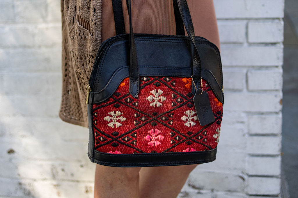 Each piece is made from a unique, hand-woven rug, so no one else will ever own the same bag.