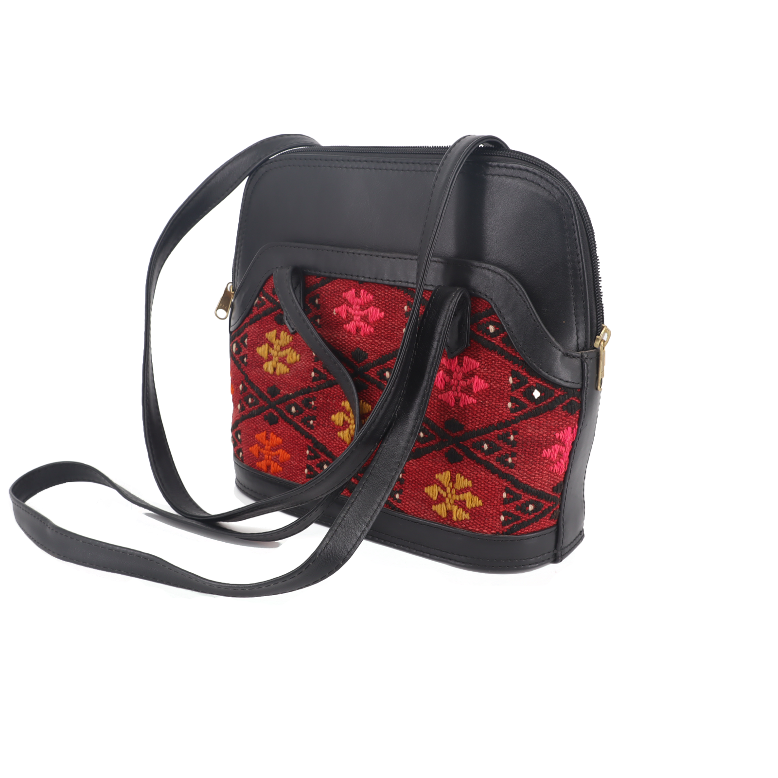 Our artisans study each pattern before cutting, ensuring that no two bags share the same layout or colors. The kilim is then combined with full-grain, vegetable-tanned leather — the most durable and natural form of leather — and finished entirely by hand.