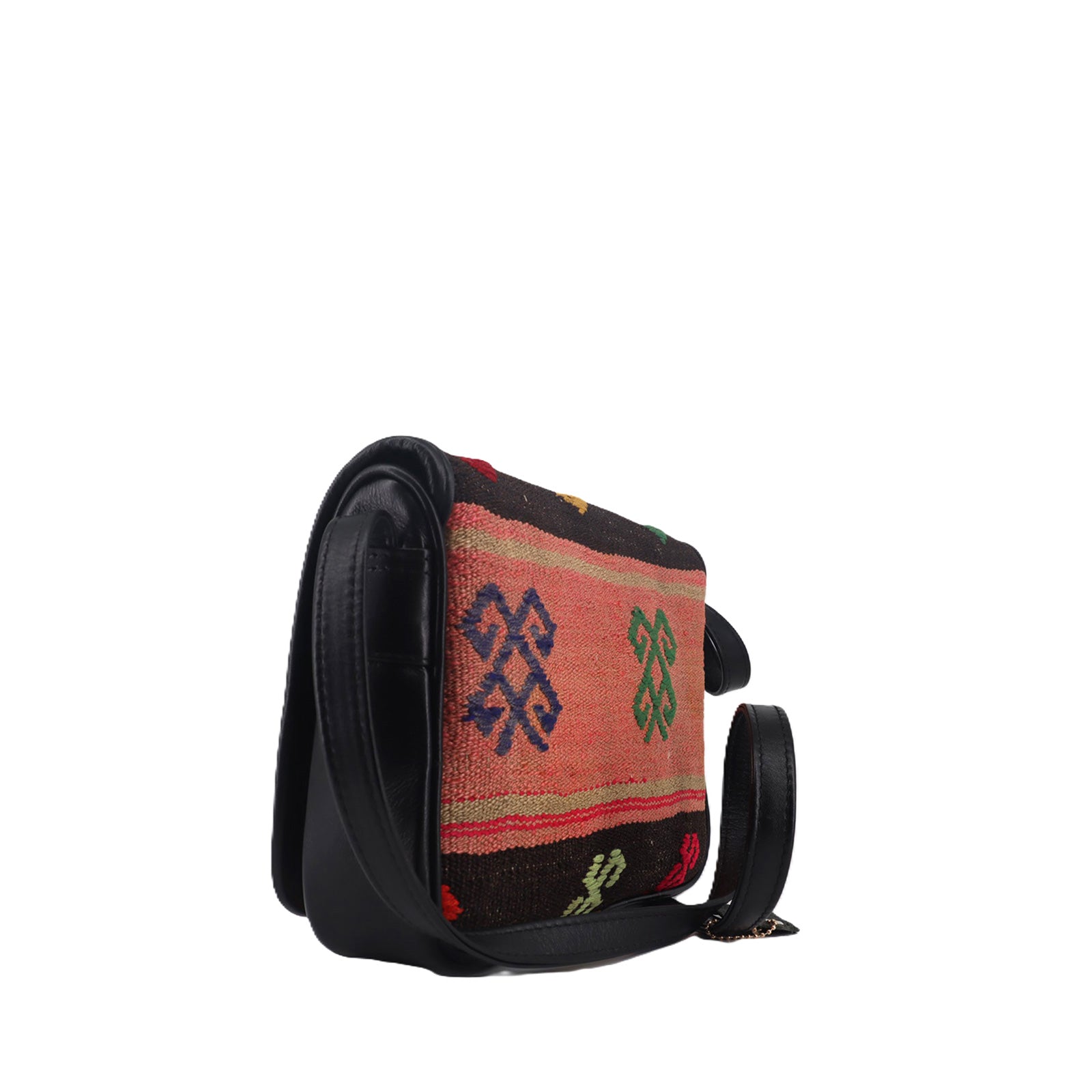 Kilim textiles were originally woven to withstand decades of daily use — they covered floors, walls, and even served as storage sacks. When combined with high-quality full-grain leather, they become even more durable.