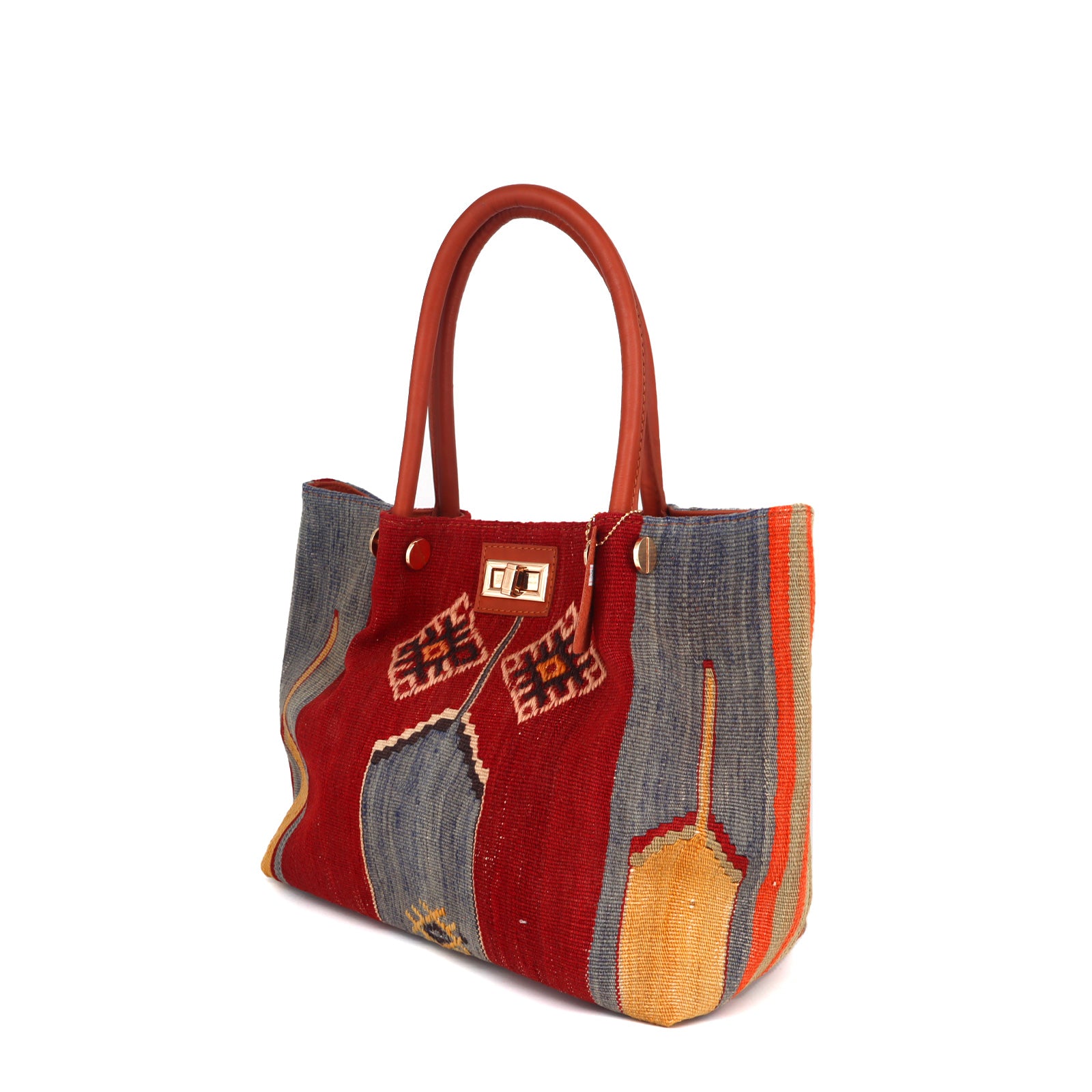 The leather reinforces high-contact areas like straps, corners, and bases, while the woven kilim remains lightweight and flexible. The result is a bag that feels soft but sturdy, able to handle daily use for years — even decades — without losing its shape or charm.